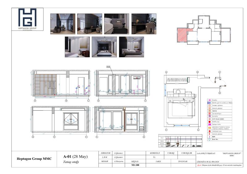 Selenium MTK – İnteryer Dizayn Konsepsiyası Selenium MTK layihəsinin interyer dizaynı müasir çoxmənzilli yaşayış mühitinin tələblərinə uyğun olaraq formalaşdırılmışdır. Konsepsiya rahatlıq, vizual sadəlik və gündəlik istifadədə funksional çevikliyi bir araya gətirən dizayn yanaşmasına əsaslanır. Məkanlar aydın oxunaqlılığa malik planlaşdırma həlləri ilə təşkil olunmuşdur. İnteryer həllərində təmiz xətlər, balanslı proporsiyalar və sakit rəng kompozisiyaları üstünlük təşkil edir. Material seçimi həm estetik davamlılıq, həm də uzunmüddətli istismar nəzərə alınmaqla aparılmışdır. Məkanın vizual yüngüllüyü və rahat atmosferi ölçülü dizayn elementləri və minimalist detal yanaşması ilə təmin edilmişdir. İşıqlandırma konsepsiyası interyerin həcm quruluşunu vurğulayan və yaşayış komfortunu artıran çoxqatlı sistem kimi işlənmişdir. Təbii və süni işığın harmonik əlaqəsi məkanlara dinamik, eyni zamanda sakit yaşayış xarakteri qazandırır. Layihənin interyer dizayn konsepsiyası və məkan həlləri Heptagon Group tərəfindən hazırlanmışdır.